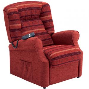 Comfortable and attractive, the Invacare Madison liftout chair, with one motor, is available in chocolate brown imitation leather. The Madison features both the lift-out and relaxed positions.